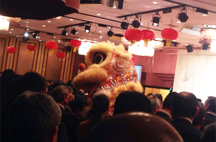 獅子舞から始まり、中華街っぽく紹興酒で鏡開きをしました(笑)
