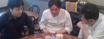左から一楽の呉店長、重慶飯店本館の木暮料理長、そして興昌の武さん。