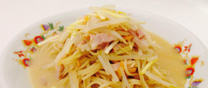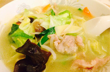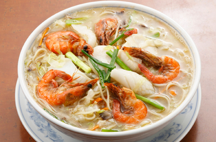 ツルッとした舌ざわりの酔仙麺と、ほのかに香る紹興酒をブレンドしたあっさり塩味ベースのスープ麺です。