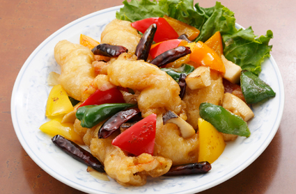 大量の唐辛子に驚きましたが、揚げた白身魚がプルプルで、爽やかな辛さが特徴でした。