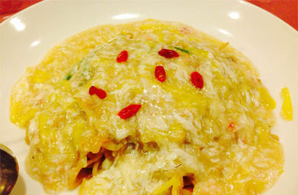蟹黄酔仙炒麺 カニ味噌あん掛け酔仙やきそば。