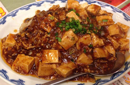 甘辛い辛麻婆豆腐と、カリカリに焼いた酔仙麺がマッチ!