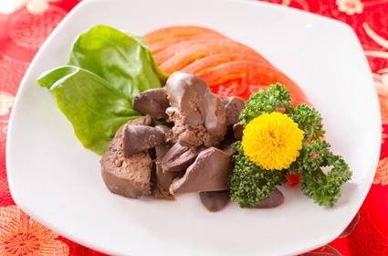 蟹、エビ、鶏肉など紹興酒に漬けた料理はかずかずご紹介してきましたが、レバーは初めてですね。
