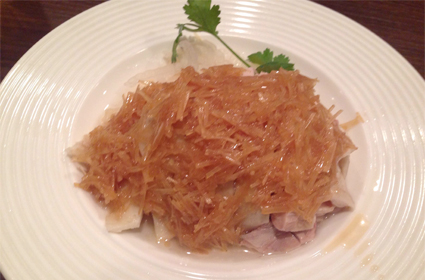 タレがかかった蒸し鶏はよく見かけますが、ここではネギ生姜に味を付けて提供。