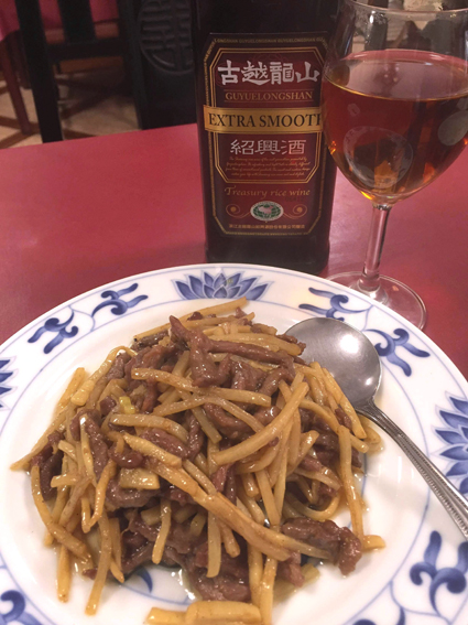 細切りの筍と牛肉を炒めた一品です。