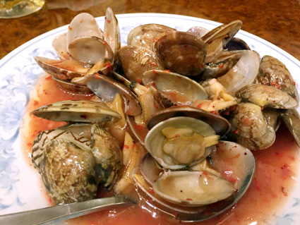 中国の福建省の家庭料理で、老酒の酒粕を使ったあさり料理。